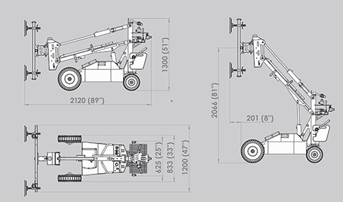- Glaslifter mit Stabilisatoren oder Auslegern